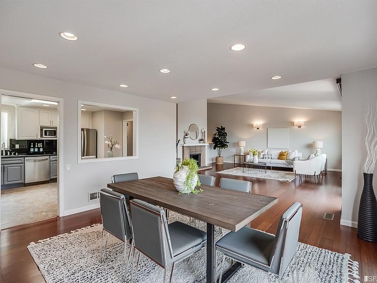 Updated kitchen w/ modern cabinets, granite counters, SS appliances & skylight. 3BR/2BA all on the same floor. Primary suite offers a double vanity, walk-in closet. Bathrooms are remodeled w/ granite counters, tile flooring. Second bath offers a shower over tub. This beautiful home is freshly painted, new refinished cabinets, new fridge, newer washer/dryer, refinished & repainted deck. 1-car deeded parking in garage. Walk to Glen Park trails and playground. Close to Glen Park shops & restaurants, BART & easy freeway access.